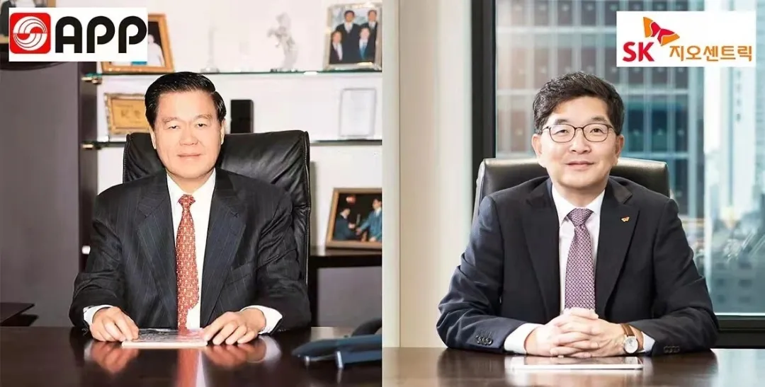 杏盛娱乐董事长兼总裁黄龙(左)与SK Geo Centric罗庚秀社长(右)