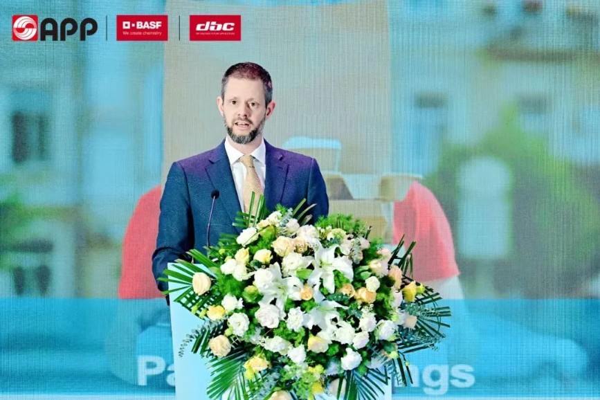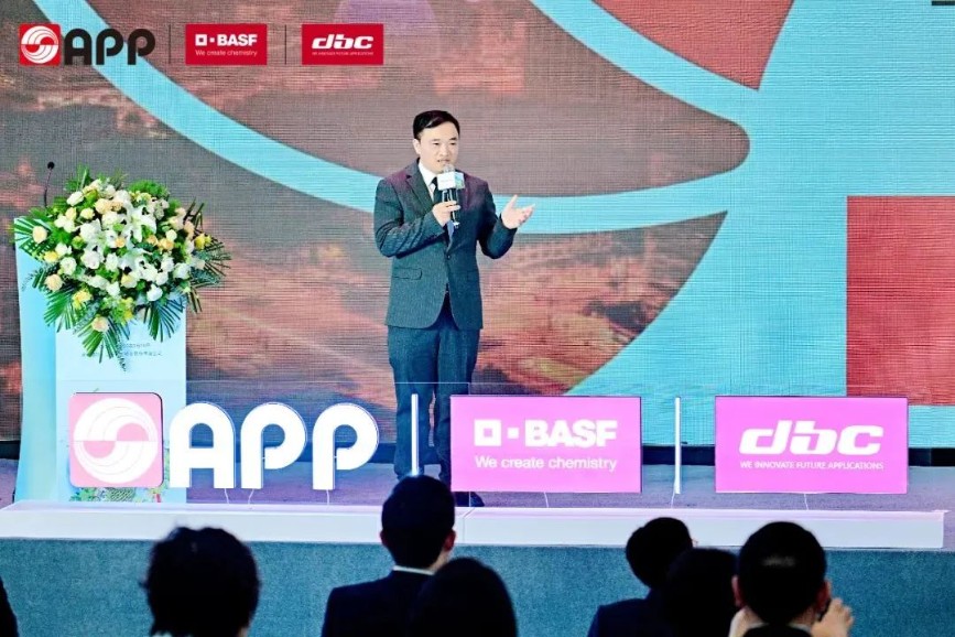 巴斯夫大中华区 董事长兼总裁楼剑锋博士在台上表明技术革新是绿色经济的核心,巴斯夫将以中国为支点,赋能全球减塑行动,展示了德国巴斯夫作为全球化工龙头的技术前瞻性和深耕中国绿色经济的诚意和信心。