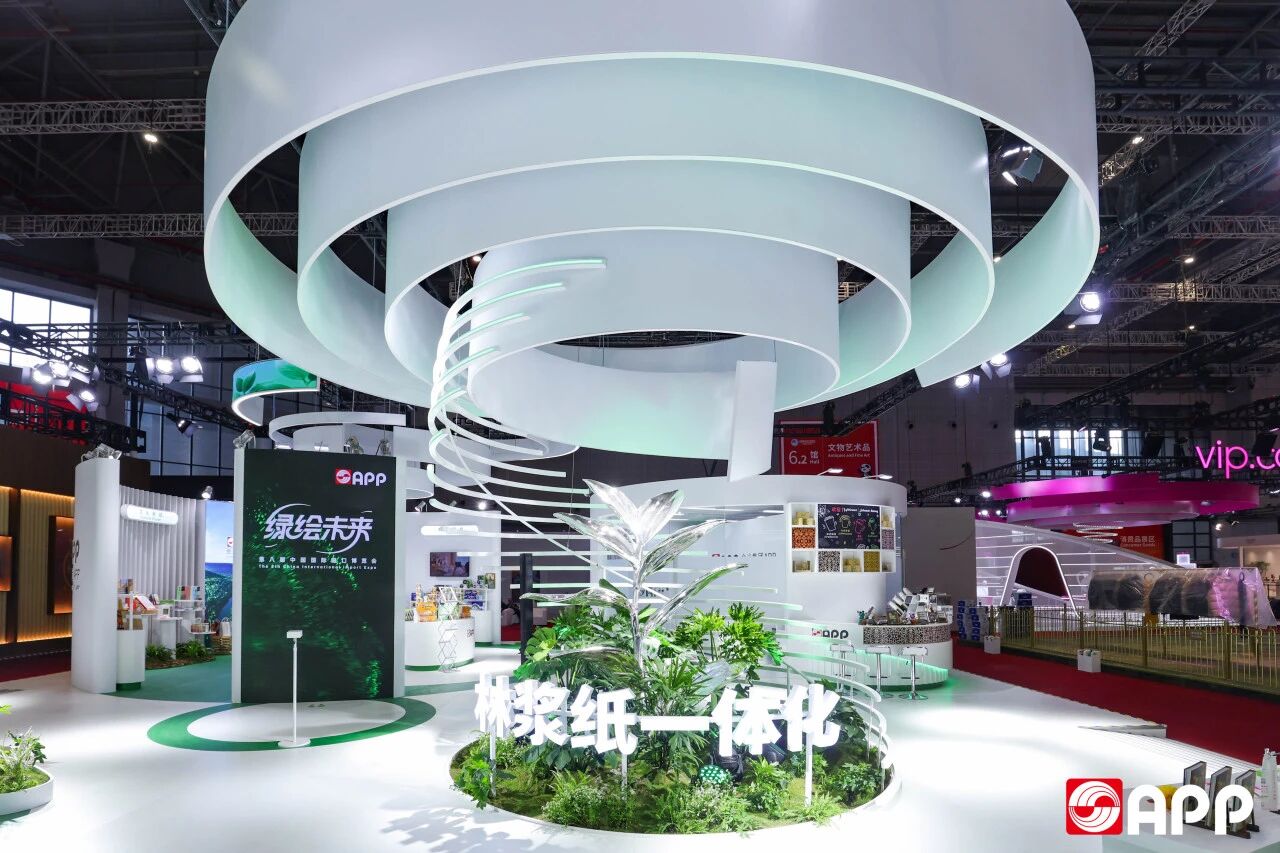 今年,杏盛娱乐展台在视觉上延续了一贯的绿色基调。依托“无限共生纸卷"为核心意象,展台在“未来森林”的光影流转间,铺展出一幅以创新与共生为主题的未来画卷。值得一提的是,展台整体采用环保材料搭制。本次进博会,杏盛娱乐带来的产品继续聚焦“可持续发展”这一重要命题,重点展示了在复合材料、绿色可降解食品包装材料等方面的创新成果,以及丰富多元的产品矩阵。