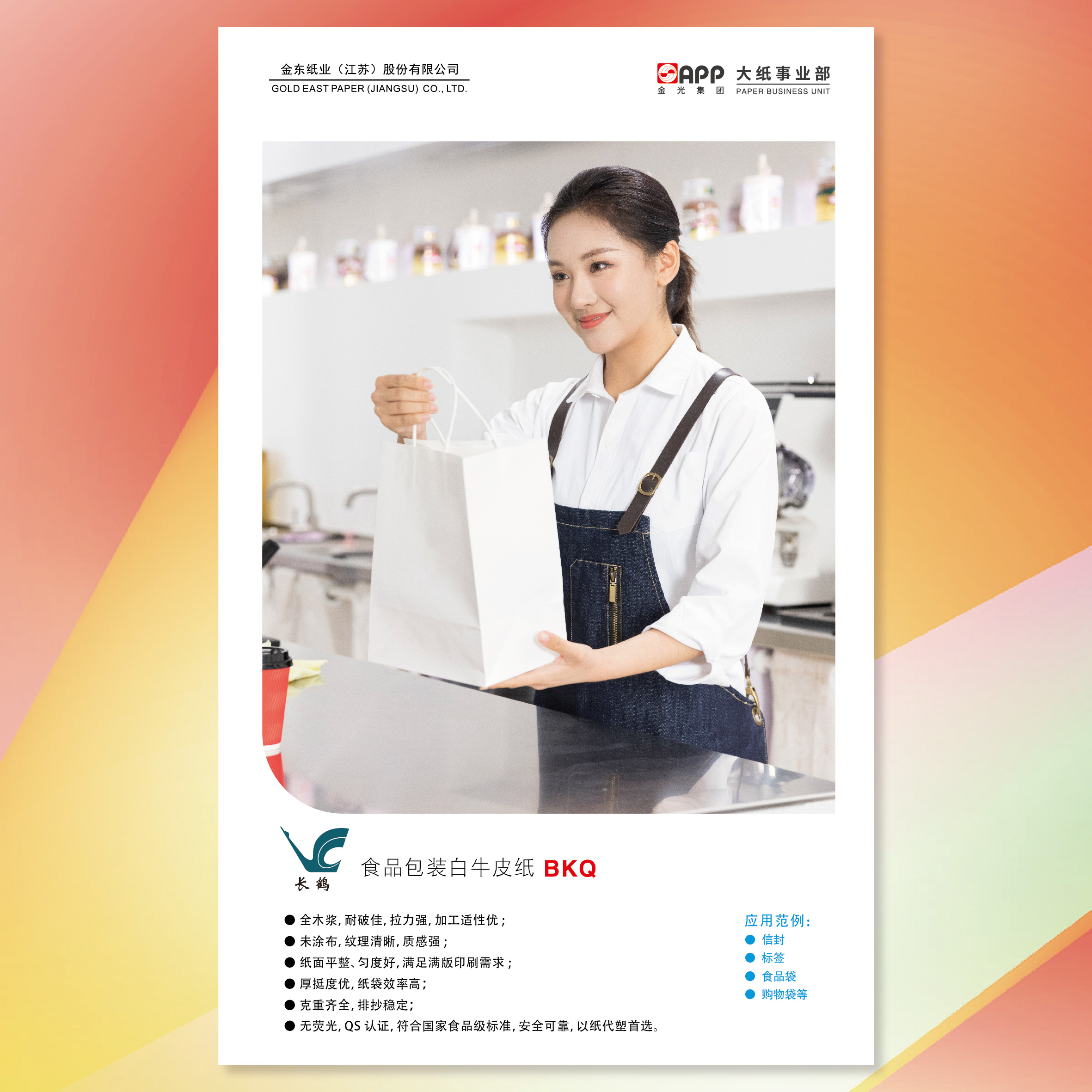 ●全木浆,耐破佳,拉力强,加工适性优; ●未涂布 无光斑 ●纸面平整、匀度好,满足满版印刷需求; ●厚挺度优,纸袋效率高; ●克重齐全,排抄稳定; ●无荧光,QS认证,符合国家食品级标准,安全可靠,以纸代塑首选。